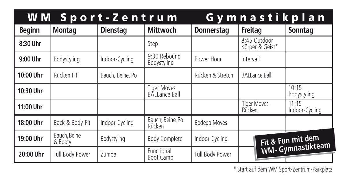 Unser umfangreiches Kursangebot bietet genau das Passende für jedermann. Von intensiven Workouts über Rückenkurse bis hin zu ruhigeren Entspannungskursen – hier ist für jeden Geschmack etwas dabei.